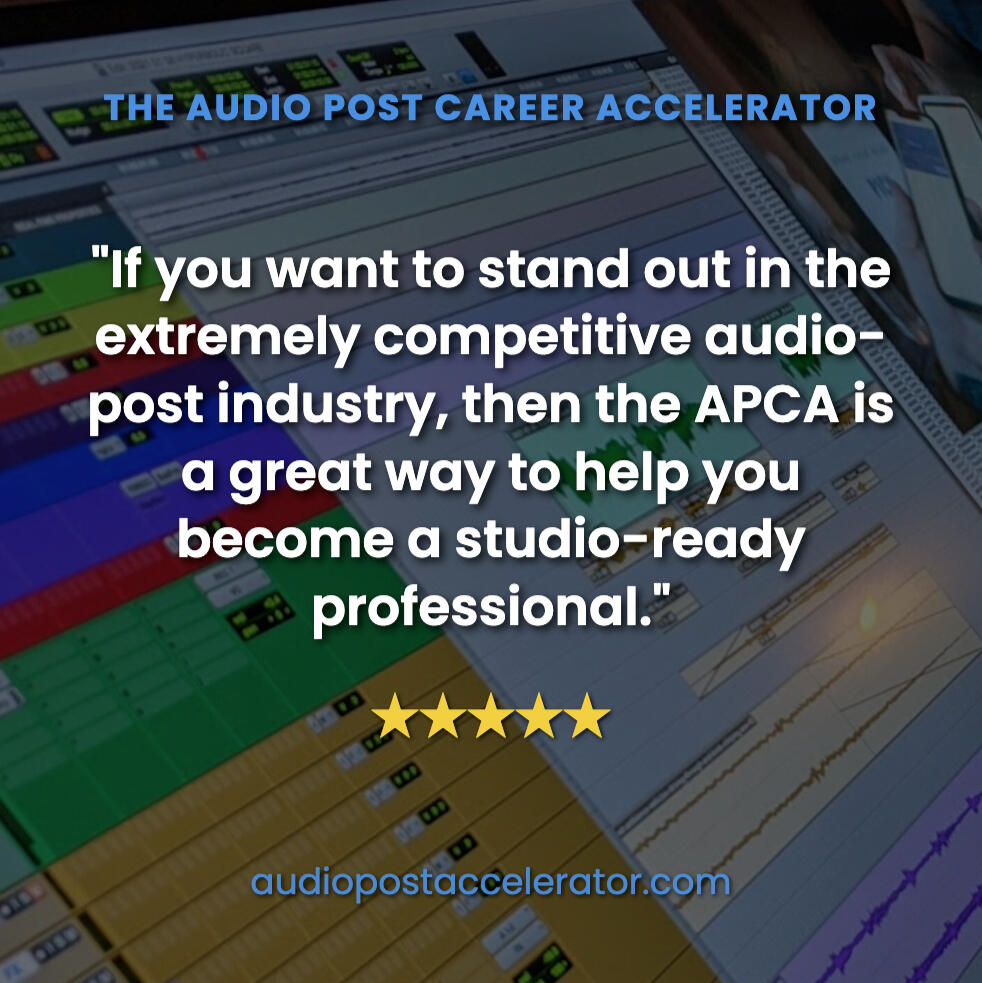 Explore the features of The Audio Post Career Accelerator (APCA), including its core media content, 1-to-1 meetings, meet-ups, community, and more! Learn how all of this ties into your mission to build a career in audio post-production. With personalized guidance and hands-on learning, APCA equips you with the technical skills, industry knowledge, and networking opportunities to thrive in the competitive world of audio post-production. Whether you’re just starting out or looking to elevate your career, the APCA is designed to support you every step of the way. Join a vibrant community of like-minded aspiring professionals, gain access to exclusive resources, and start making your mark in the industry today!